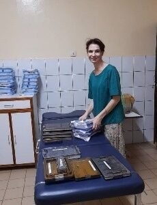 Martine Bertheau y a impliqué tous ses enfants et accomplit un travail colossal de récupération de colis et matériel et de papiers à remplir et surtout de rangements du container qui fait l’admiration de tous. Une vocation dans la continuité et l’efficacité .On décompte 6 containers par an !